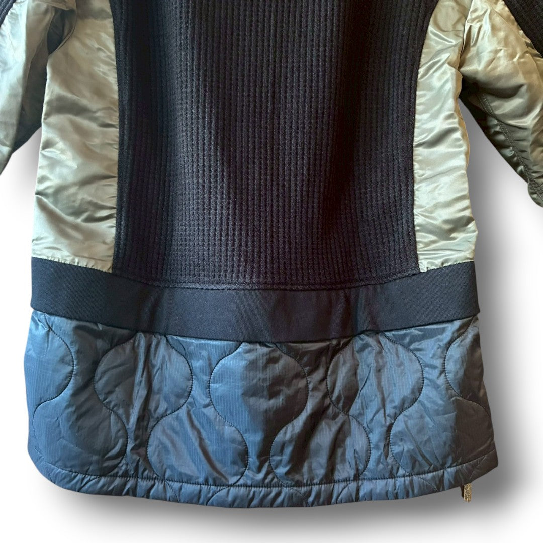 Quilted fabric at the hem adds both insulation and visual depth.