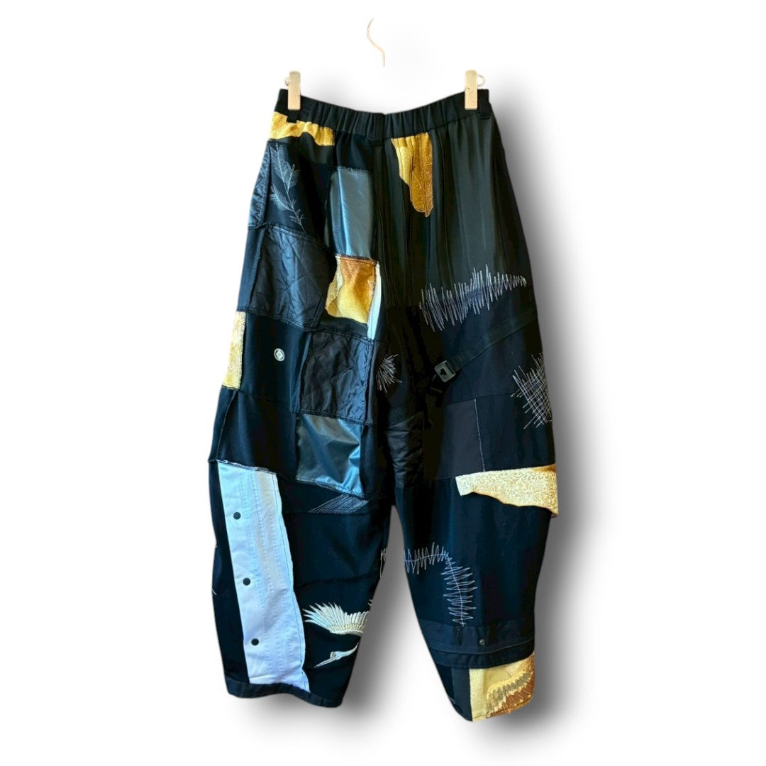zivun by ogino Reconstructed Kimono Tuck Pants | Black Patchwork | One-of-a-Kind | OLD FLIP