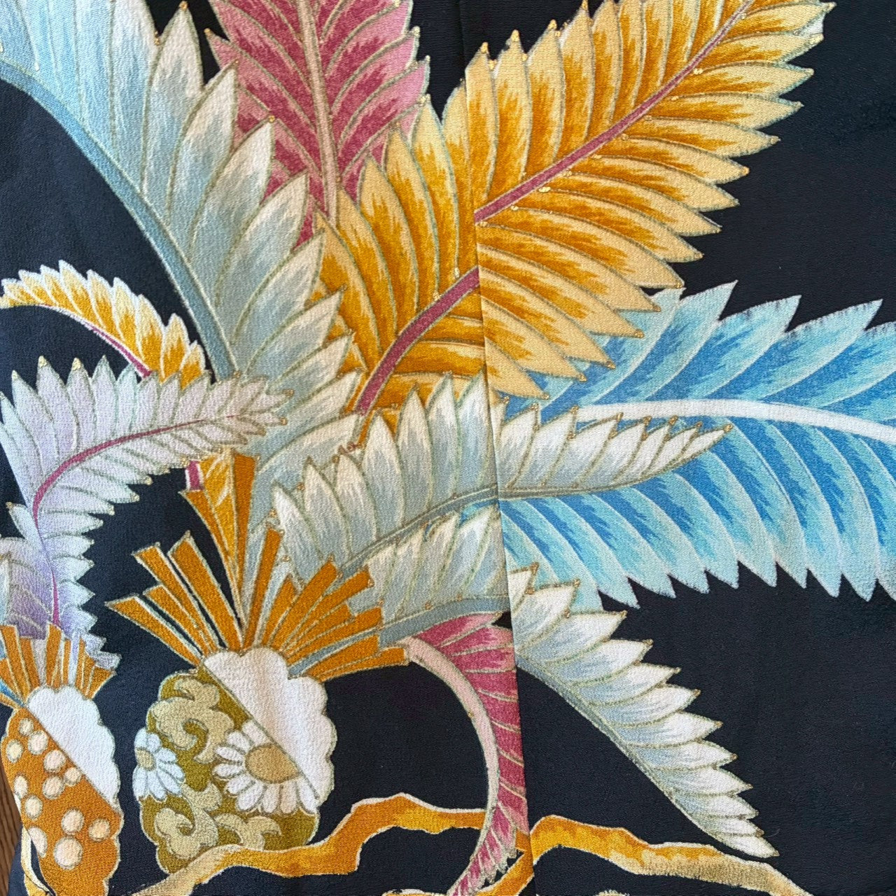 華やかな黒留袖の植物モチーフを大胆に配置。