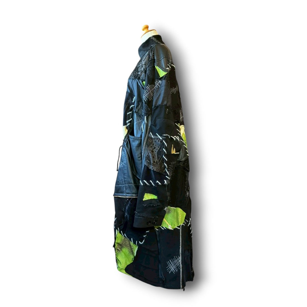 zivun by Nao Reconstructed Kimono Long Mods Coat | Black Patchwork | Unisex | One-of-a-Kind | OLD FLIP